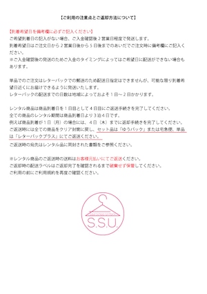 単品はレターパックプラス(送料全国一律520円)での郵送(配送日指定不可)。 セットはエコ配または宅急便でのお届けです。 ※セットのレンタルはエコ配送料が、単品のレンタルはレターパックの送料が適用されます。レンタル品のご返送時にはお客様元払いにて同封の返送用伝票を使用しヤマト宅急便にてご返送ください。